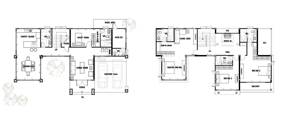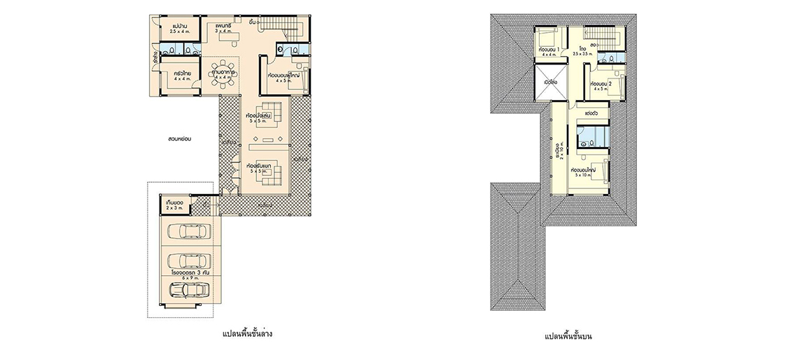 ขนาดตัวบ้านรวมที่จอดรถ