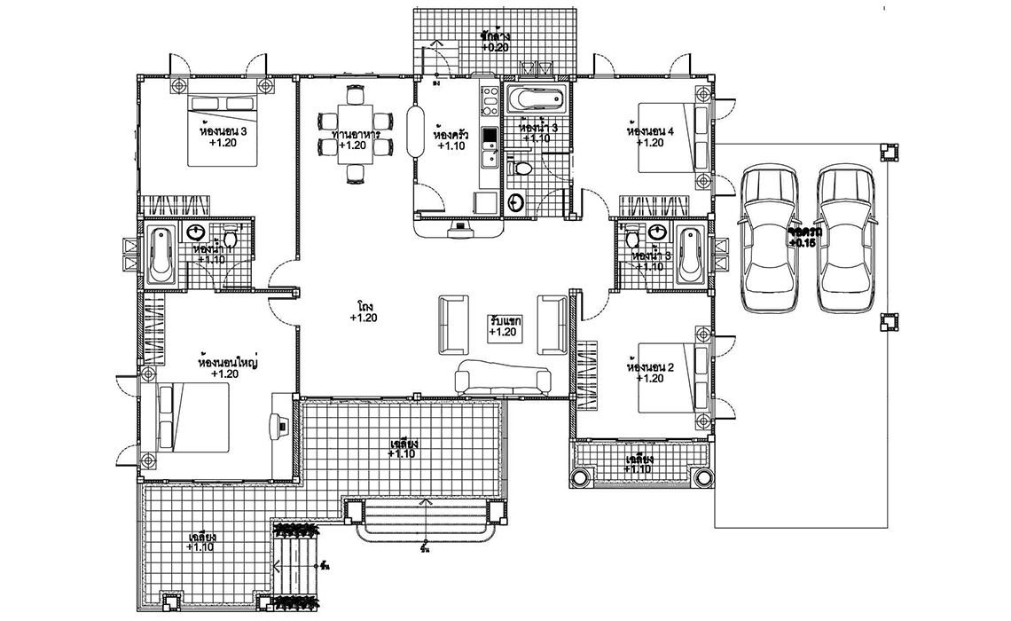 4 ห้องนอน 3 ห้องน้ำ ที่จอดรถ 2 คัน