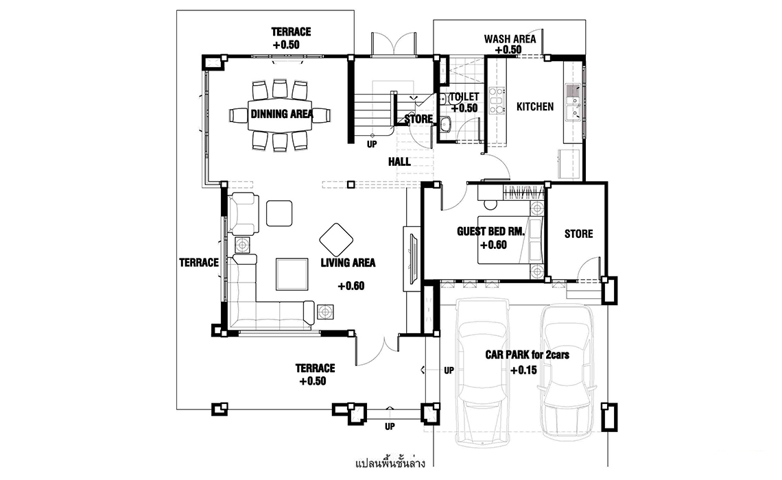 ขนาดตัวบ้าน ก.12.00 ล.11.00 เมตร