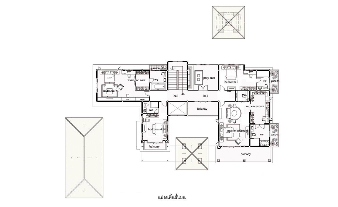 *ชั้นบนโอ่โถงด้วยห้องนอน Master bed room และ 3ห้องนอนขนาดใหญ่พร้อมห้องน้ำชมสวน, ห้องพระ