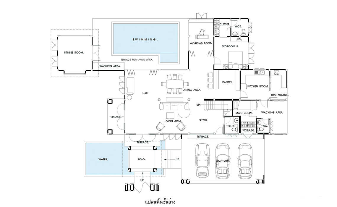 พื้นที่ใช้สอย 650 ตารางเมตร ขนาดที่ดิน ก.31.00 ล.24.00 เมตร 5 ห้องนอน 6 ห้องน้ำ พร้อมสระว่ายน้ำ ที่จอดรถ 3คัน